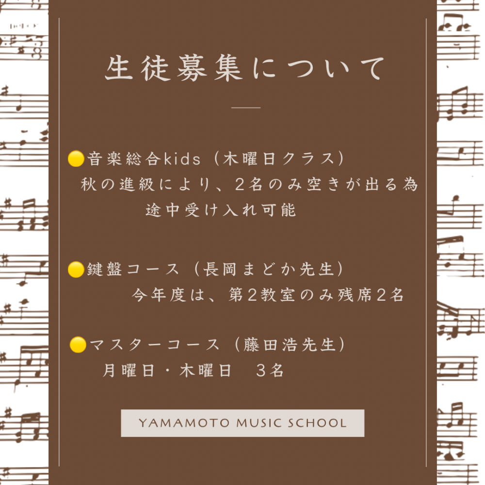 ・鍵盤コース・・・音楽総合コースからの進級者から優先となる為、要相談(若干名)